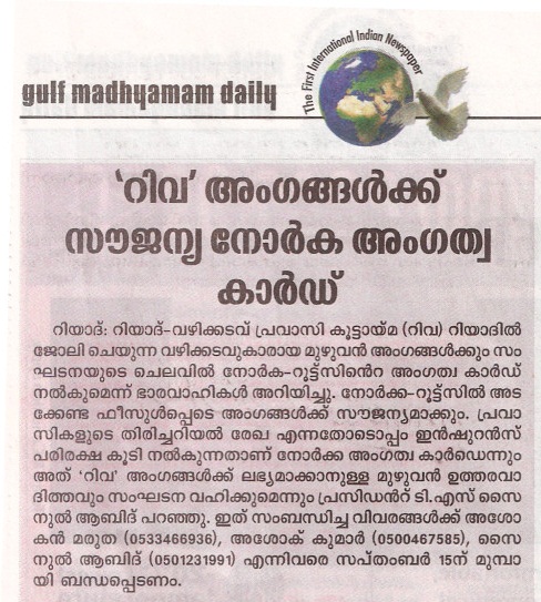 RIVA(Riyadh-Vazhikkadavu Pravasi Koottayma) is formed for the well- being of Vazhikkadavu natives who works in Riyadh area-capital city of Saudi Arabia.